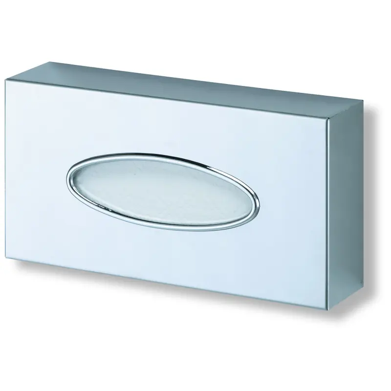 Корпус из хромированной латуни толщиной 0,60 мм с толщиной защитного покрытия 9,8 мкм никеля + 0,40 мкм хрома. Без задней панели. Изделие выполняет функцию крышки, которая устанавливается на коробку с бумажными салфетками для лица.