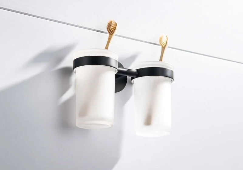 Стакан с держателем двойной AQUATEK, матовый черный AQ4117MB ЕВРОПА