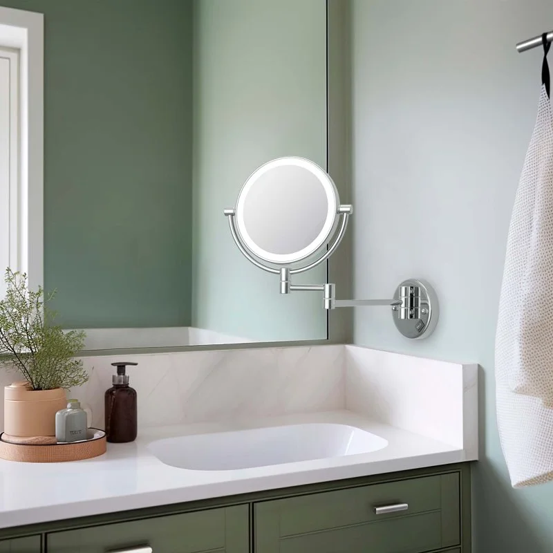 Компактное настенное зеркало AQUATEK AQ4912CR с 5-кратным увеличением обеспечит высокую детализацию для косметических процедур и бритья. Встроенная LED-подсветка равномерно освещает лицо, позволяя работать в любых условиях. Конструкция с поворотным креплением даёт возможность менять угол наклона, что улучшает удобство использования. Изделие защищено от влажности, подходит для ванных комнат, салонов красоты и парикмахерских. Работает от сети 220 В, управление сенсорное.