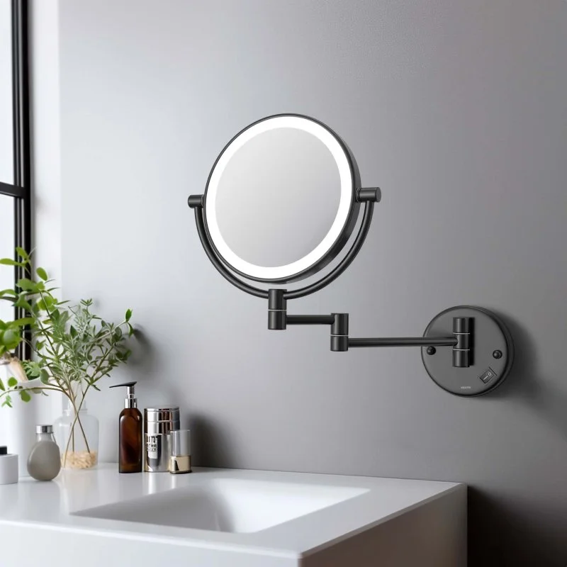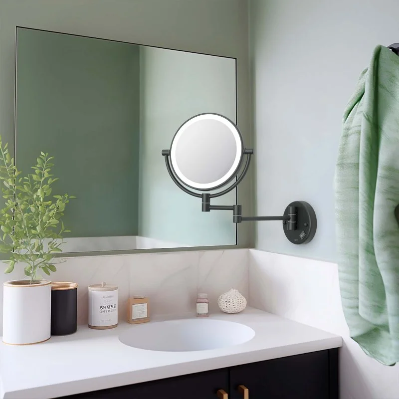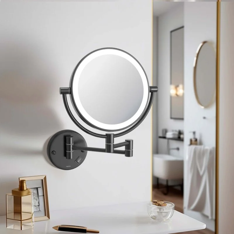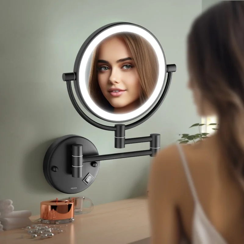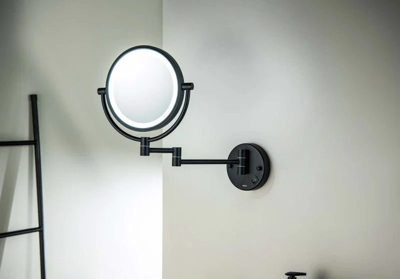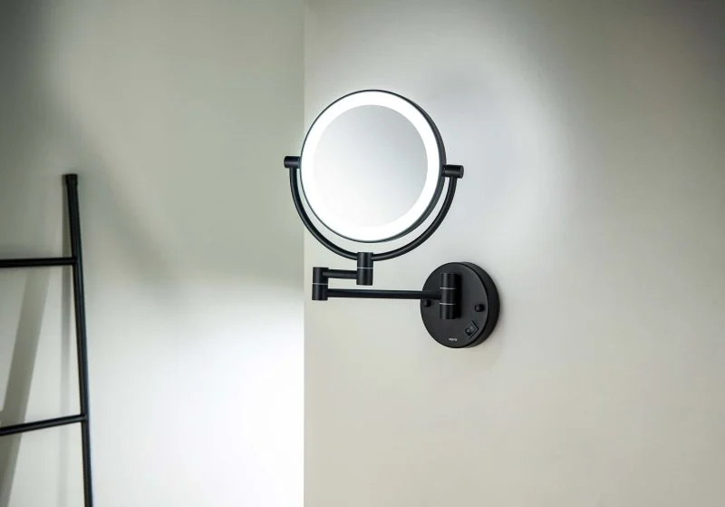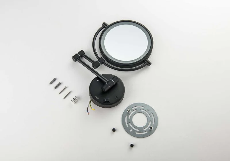 Зеркало косметическое настенное с подсветкой 5х AQUATEK, матовый черный AQ4912MB