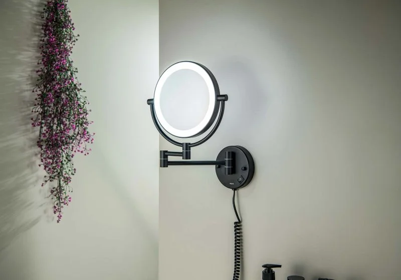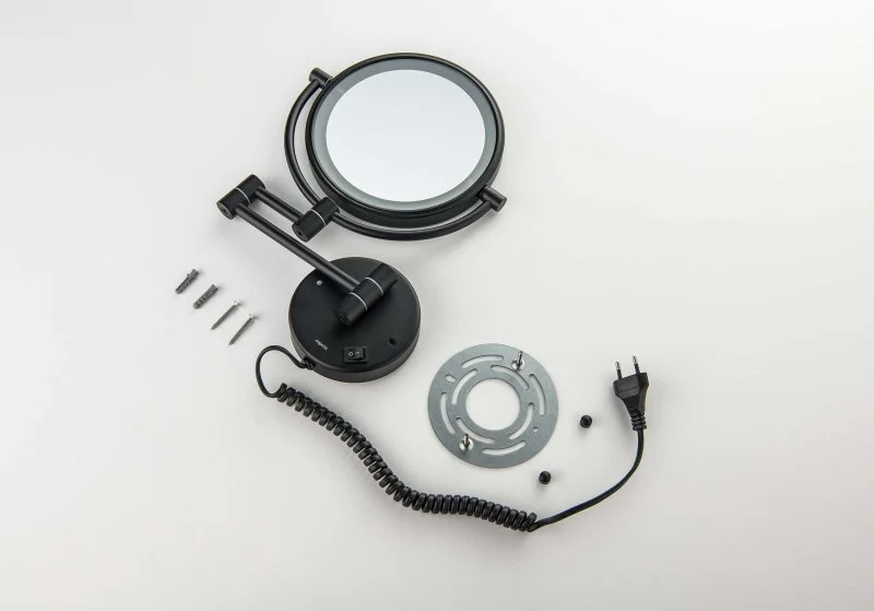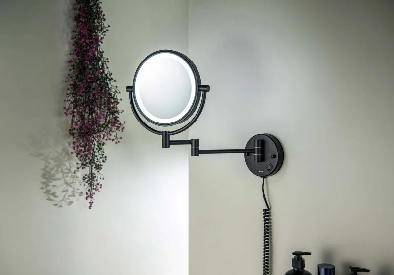 Зеркало косметическое настенное с подсветкой 5х AQUATEK, матовый черный AQ4915MB